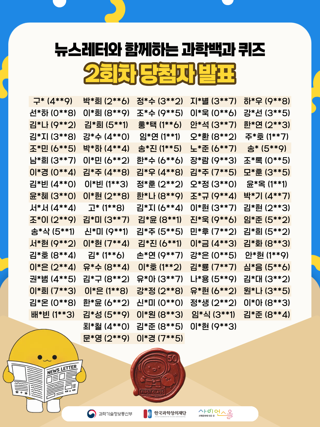 뉴스레터와 함께하는 과학백과 퀴즈 이벤트 2회차 당첨자 발표