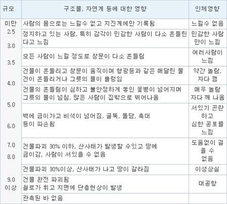 [요약] 규모는 미국의 지진학자 리히터가 만든 지진의 절대적 세기로 지진계에서 관측되는 가장 큰 진폭으로부터 계산된 로그값을 바탕으로 만들어진 단위이다.